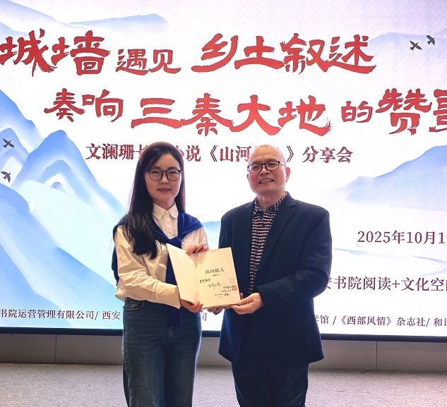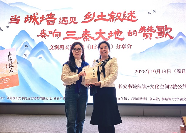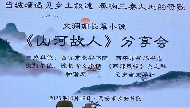 【和谐中国网】(西安讯)2025年10月19日,一场题为“当城墙遇上乡土叙述,奏响三秦大地的赞歌”文澜珊长篇小说《山河故人》分享会在长安书院成功举办。此次活动由西安市长安书院、西安市新华书店联合主办,并得到了陈长吟文学馆、《西部风情》杂志社、和谐网、陕西广播电视报、中国商报陕西记者站等联合支持,活动吸引了众多文学爱好者、专家学者及媒体人士的参与。