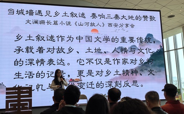 在分享会上,作家文澜珊作了主旨发言,结合《山河故人》的创作,讲述了乡土叙述的核心理念及特点。她表示,乡土叙述不仅仅是对乡土生活的描绘,更是对乡土文化、乡土精神的一种深入挖掘和传承。通过《山河故人》这部作品,她希望能够让更多的人了解乡村、热爱乡村,并希望通过自己的努力,把陕西的物质文化和非物质文化传承下去。六位特邀嘉宾分别对《山河故人》从不同层面做了深刻点评,肯定了其文学价值和社会意义。