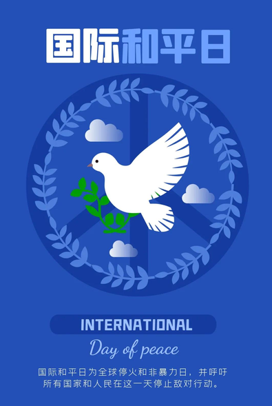 寰宇苍茫,烽烟曾炽;人类文明,战火频摧。昔有列国争衡,血染山河失色;强权割据,泪干草木含悲。乃知兵戈为天下巨痛,和平乃世间至贵。于是联合国振臂一呼,万邦应和,定九月廿一日为国际和平日,欲使干戈永偃,寰海同辉。