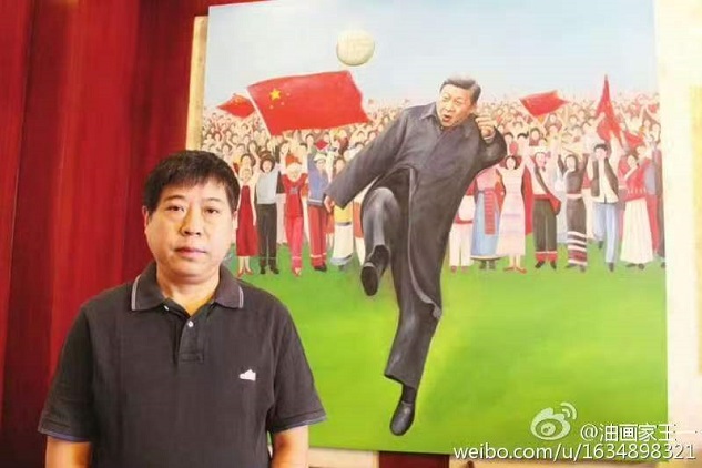 中国第一位“用油画画球迷主题的艺术家”