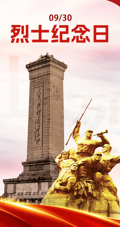 2014年9月30日,我国迎来首个烈士纪念日。北京天安门广场上,人民英雄纪念碑巍然耸立,纪念碑正面镌刻着毛泽东题写的"人民英雄永垂不朽"八个鎏金大字 。背面为毛泽东起草、周恩来书写的碑文:"三年以来,在人民解放战争和人民革命中牺牲的人民英雄们永垂不朽!三十年以来,在人民解放战争和人民革命中牺牲的人民英雄们永垂不朽!由此上溯到一千八百四十年,从那时起,为了反对内外敌人,争取民族独立和人民自由幸福,在历次斗争中牺牲的人民英雄们永垂不朽!"