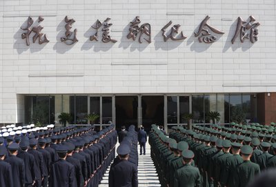 今值七十五载春秋,追思往烈。丹心已铸丰碑,浩气长存史页。昔时焦土,今见楼宇参天;旧日战场,遍开金达莱艳。和平非乞来之幸,尊严以热血书成。遥望半岛晨星,犹照汉家明月。惟愿兵戈永偃,共护东方之既白。